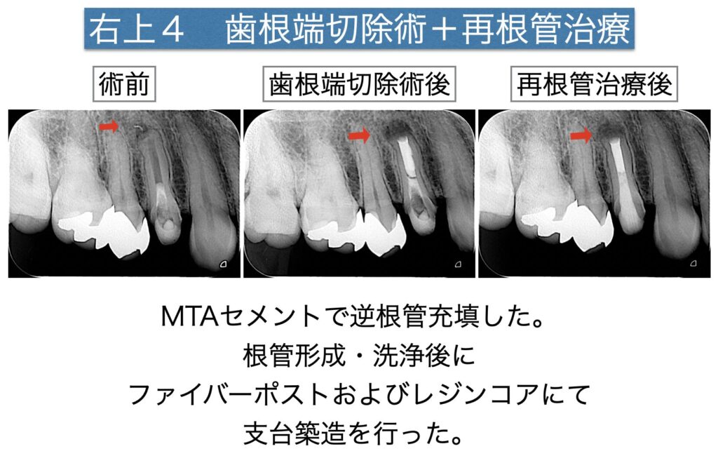 | 処置内容 | 歯根端切除術+再根管治療+支台築造 |